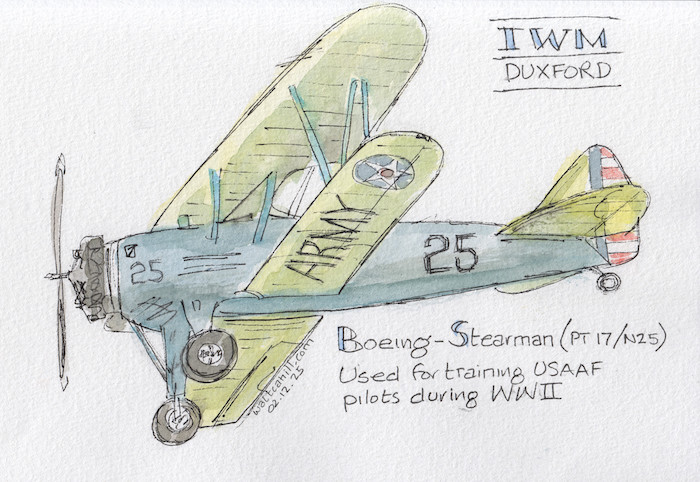 #stearman #stearmanbiplane #BoeingStarman #imperialwarmuseumduxford #watercolour #lineandwash