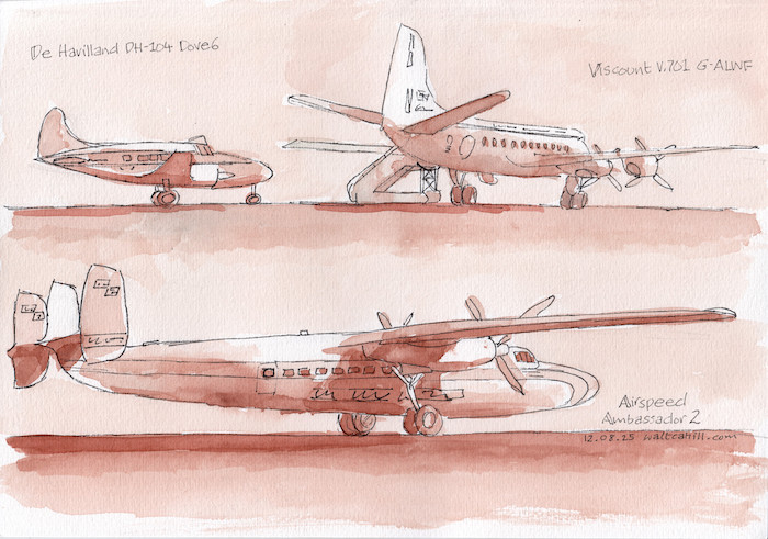 De Havilland DH-104 Dove 6, Viscount V.701 G-ALWF, Airspeed Ambassador 2
